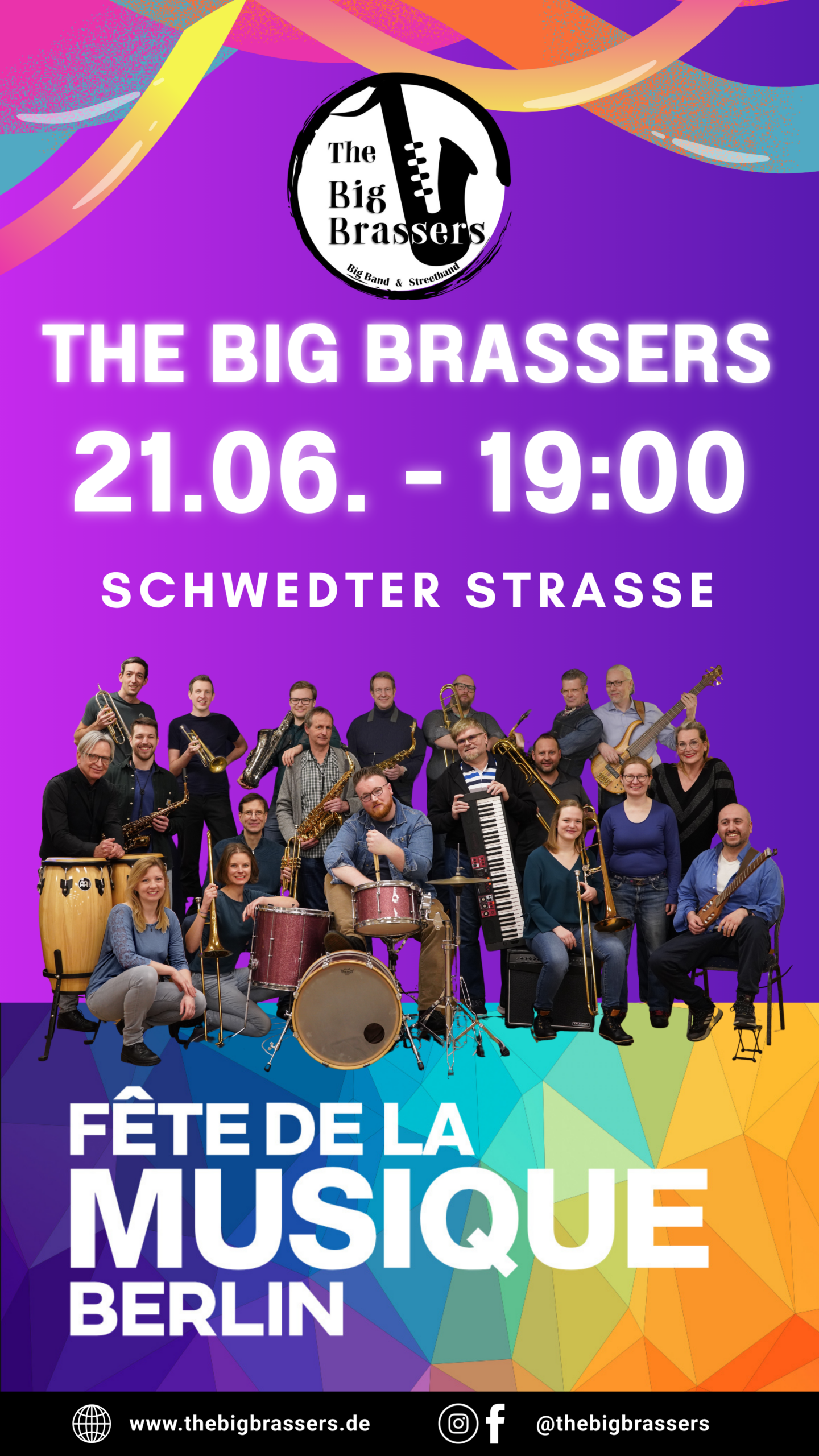 Draußen, live und kostenlos – wir spielen auf der Straße mitten in Prenzlauer Berg. Die Fête de la Musique macht Berlin zur größten Bühne der Welt, und wir sind dabei. Kommt vorbei, tanzt mit und feiert die Musik!